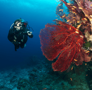 Epic scuba diving — coral walls, swim-through caves, and fish life that makes you forget to check your air gauge.
